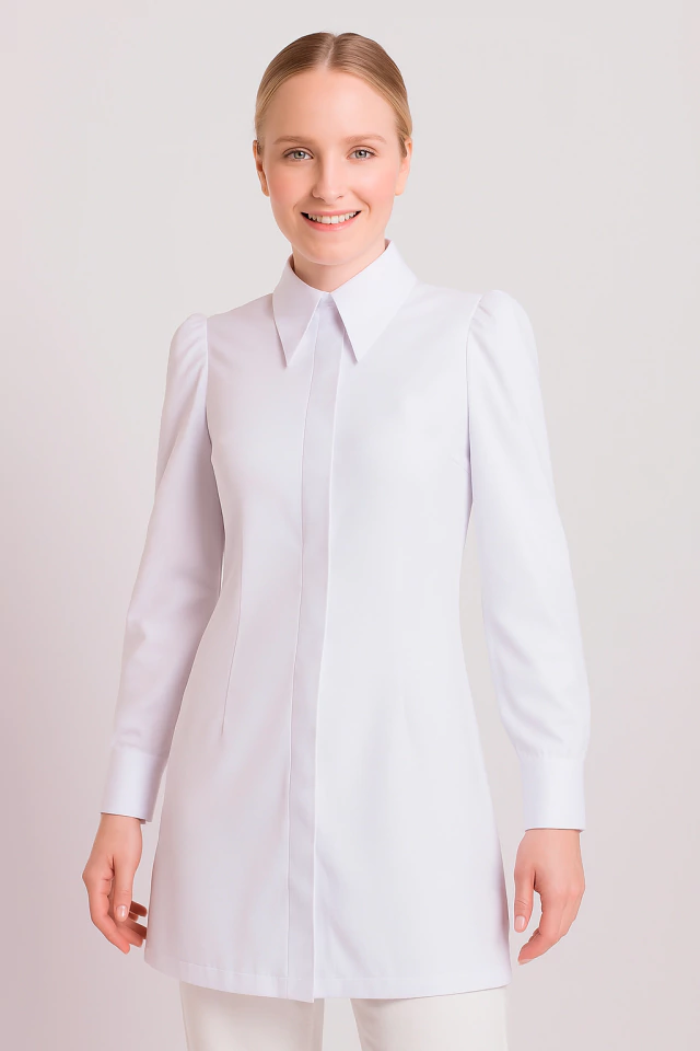 Ideal para quem deseja se sentir confiante e valorizada, seja no consultório ou em ambientes clínicos. O caimento impecável realça a silhueta com discrição, enquanto cada detalhe — da gola aos punhos — revela o cuidado da Vivallis em criar peças que unem beleza, exclusividade e bem-estar.